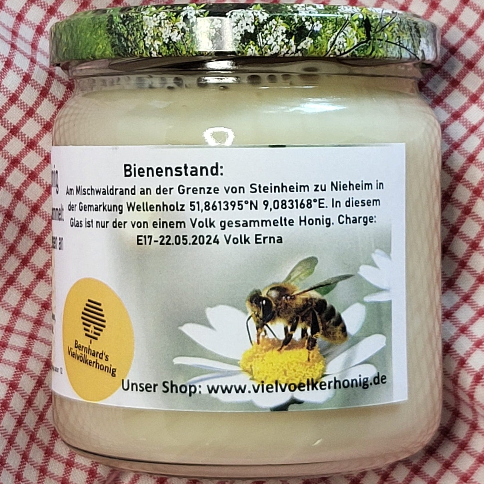 Naturreiner Bienen-Honig gesammelt in den blühenden Frühlingswiesen an den Emmerauen von Bienenvolk Erna 500g